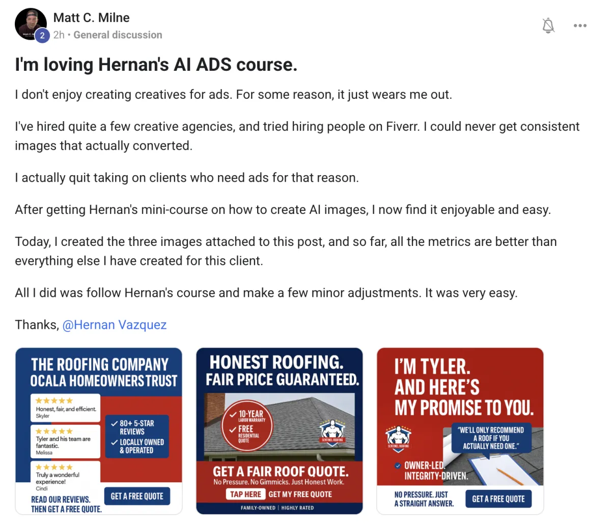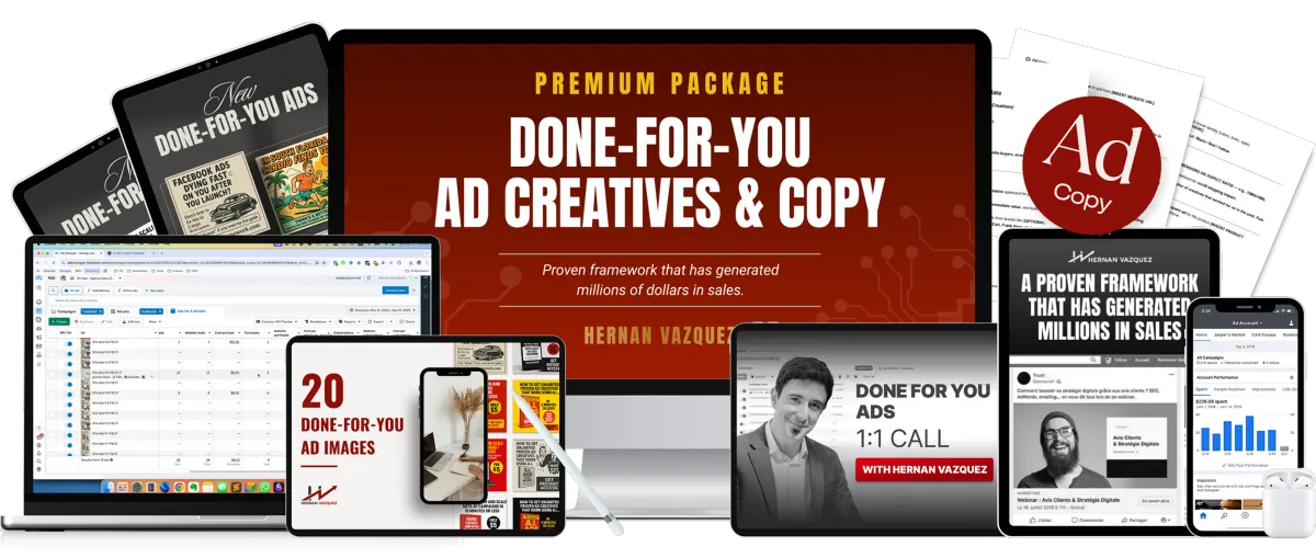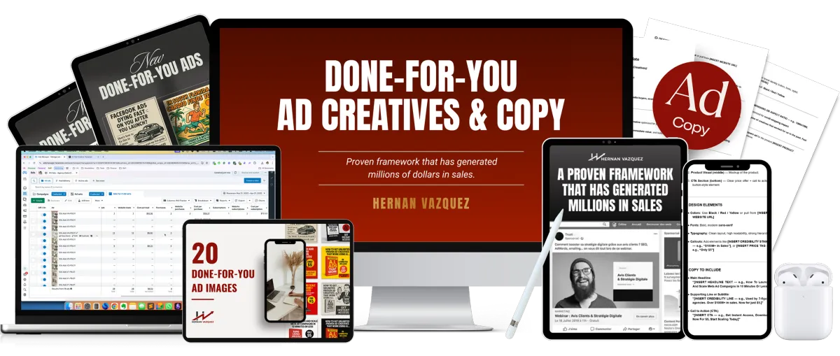 20 Done-For-You Ad Images A mix of AI-powered creatives and Hernan’s “Ugly Ads” format — designed to double or even triple your CTRs.